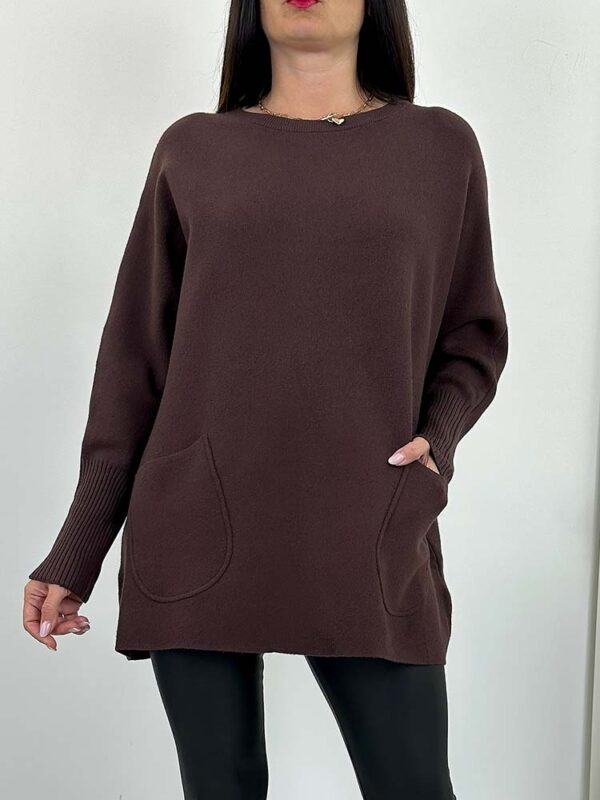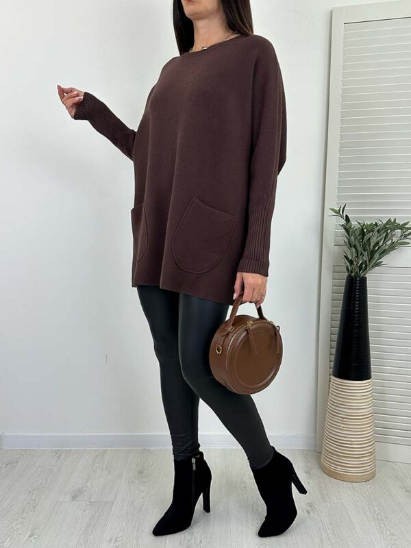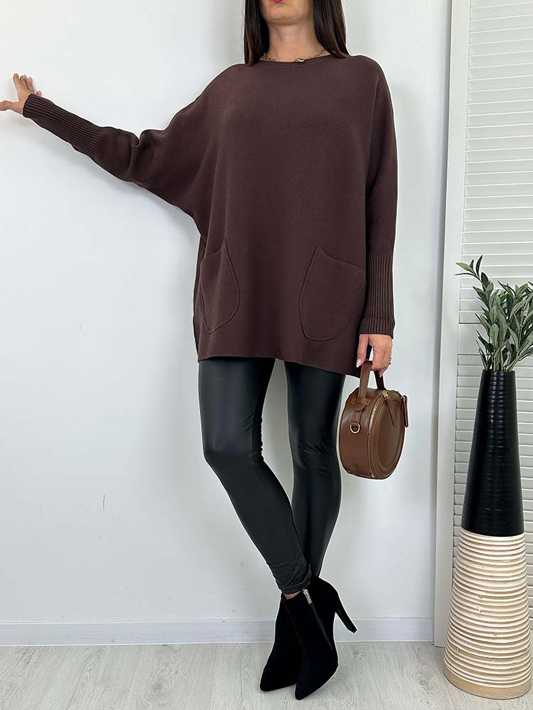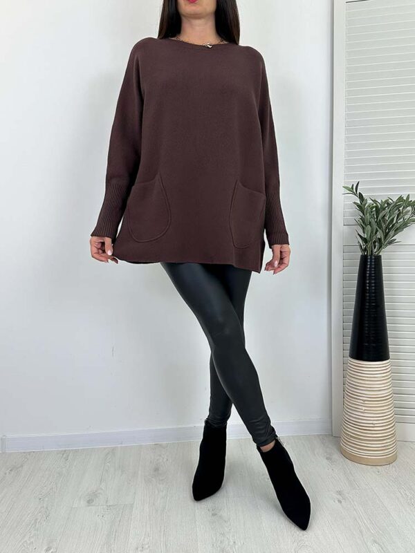 SWETER LIMAGO czekolada oversize z kieszeniami