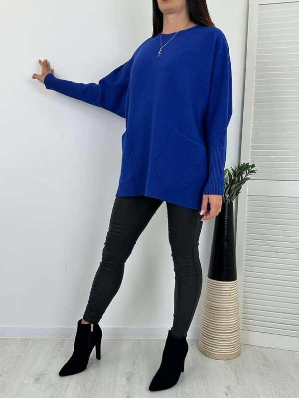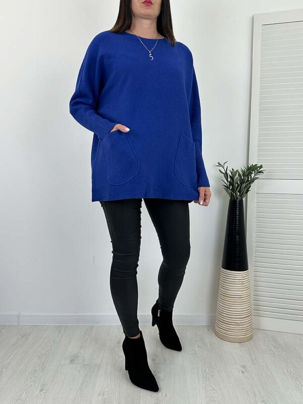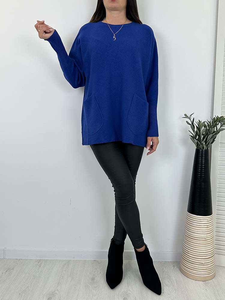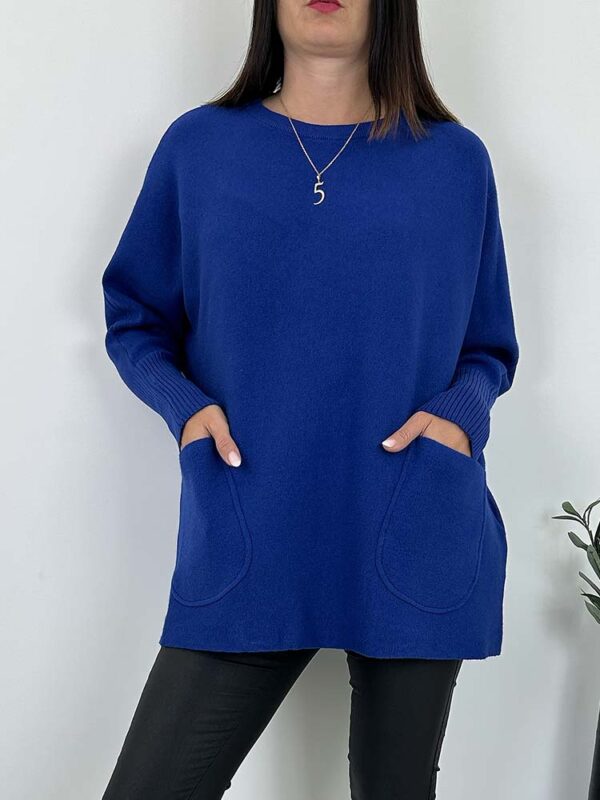 SWETER LIMAGO oversize z kieszeniami chabrowy