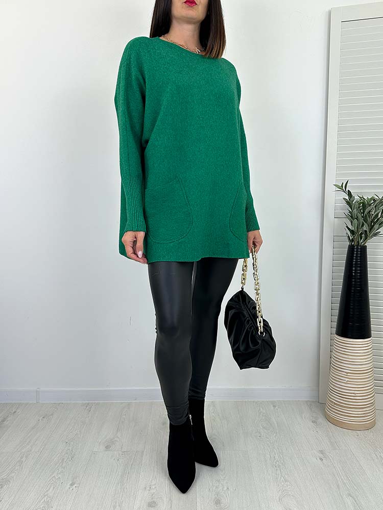 Sklep / Moda / Swetry / SWETER LIMAGO zielony oversize z kieszeniami