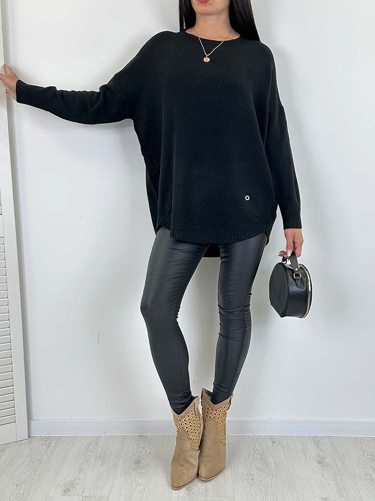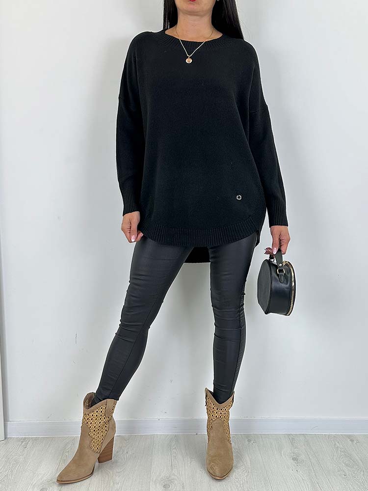 SWETER VALERI dłuższy czarny