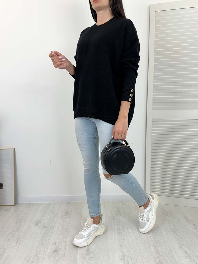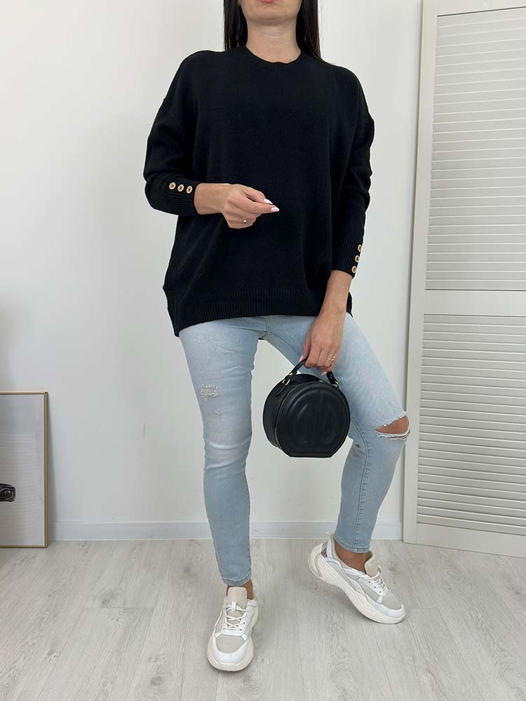 WYGODNY SWETEREK  wykonany z miękkiej przędzy . Dłuższy,  OKRĄGŁY  DEKOLT, OZDOBNE GUZIKI NA RĘKAWACH