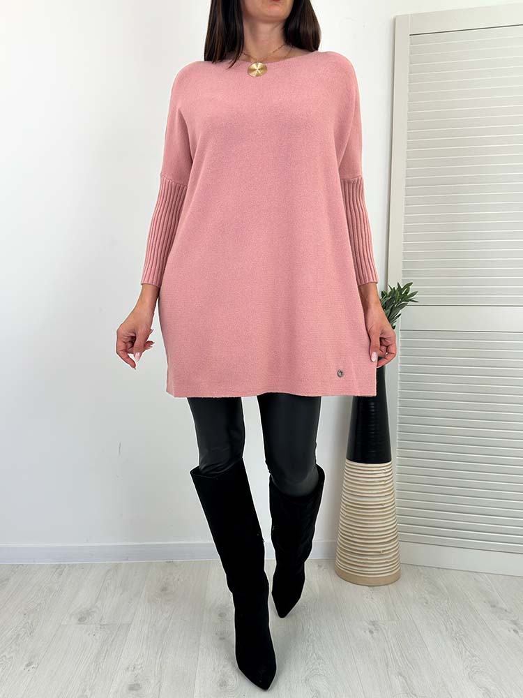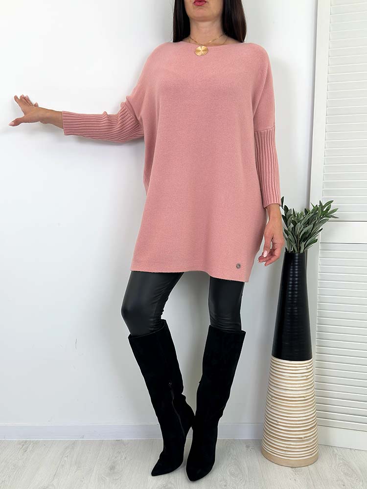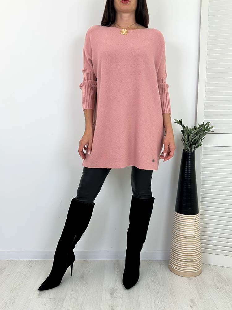 Sklep / Moda / Swetry / PAMELA DŁUGI SWETER TUNIKA PUDROWY